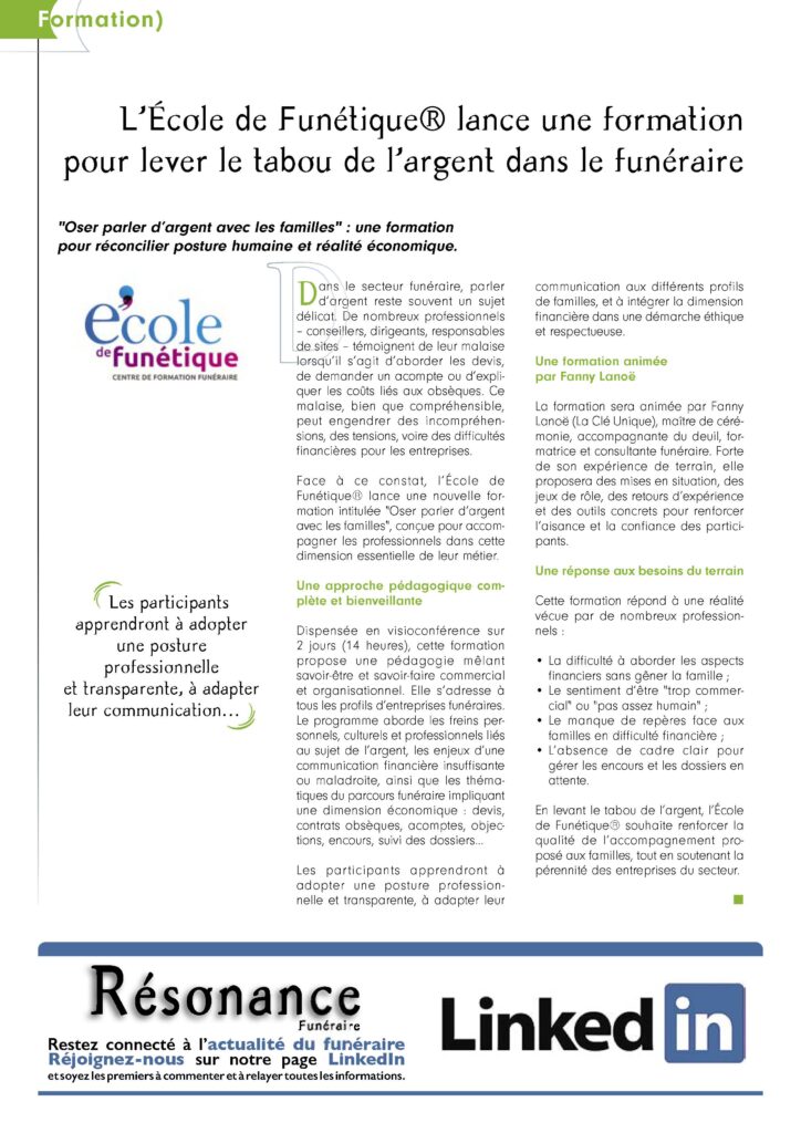 L’École de Funétique® lance une formation pour lever le tabou de l’argent dans le funéraire